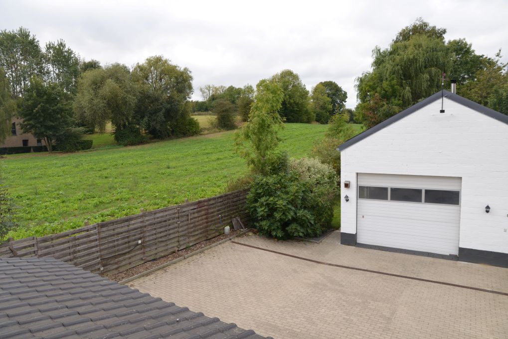 A l’arrière de la maison (côté Sud), vous découvrirez un entrepôt (par exemple pour y entreposer des voitures de collection ou autre), une cour et un jardin paysager.
